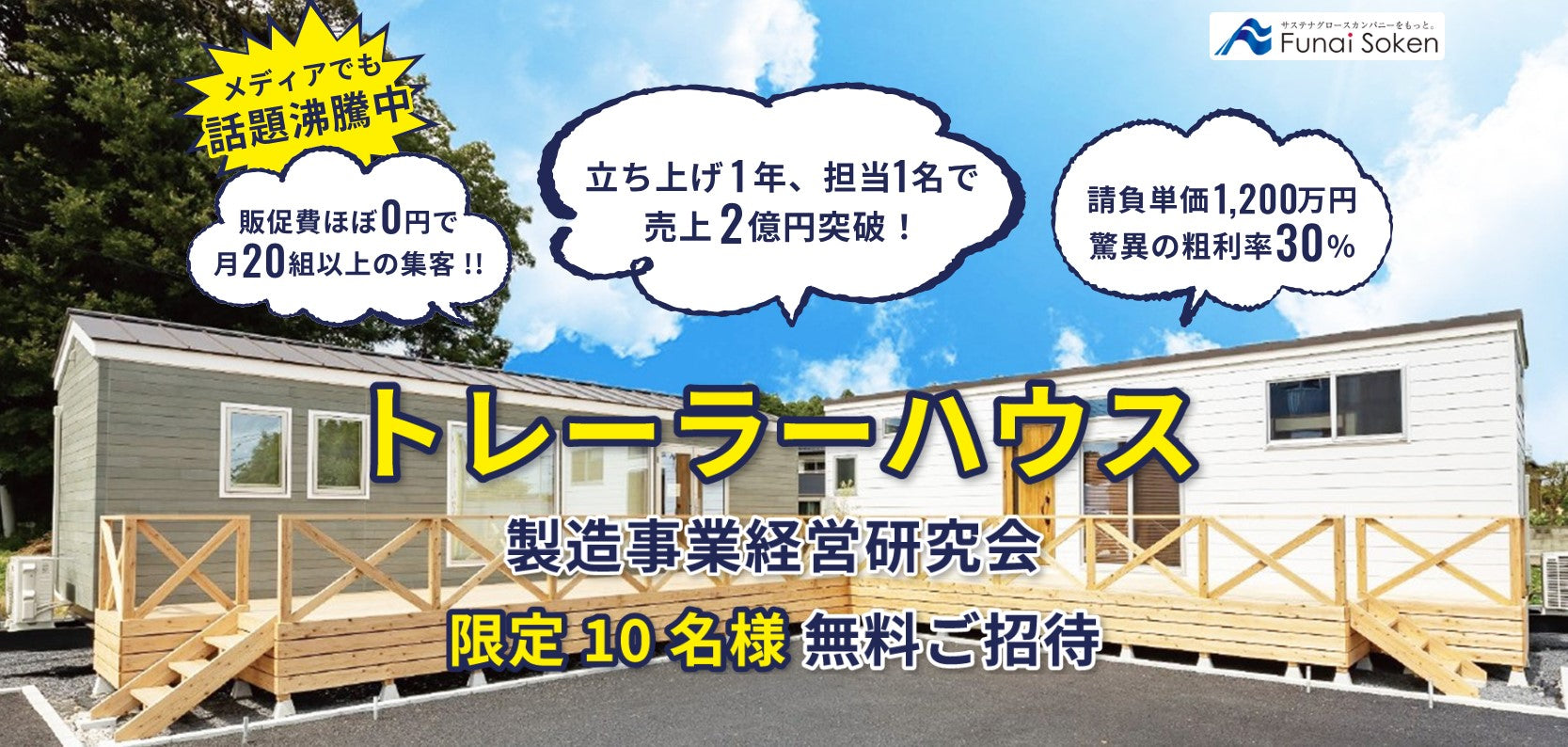 トレーラーハウス製造・販売事業に特化した経営者のための勉強会です。参加者が自らの体験や事例を語り、共有し、お互いを高めあう【師と友づくり】の場として、リアルもしくはオンラインで全国から多くの経営者にご参加いただいています。