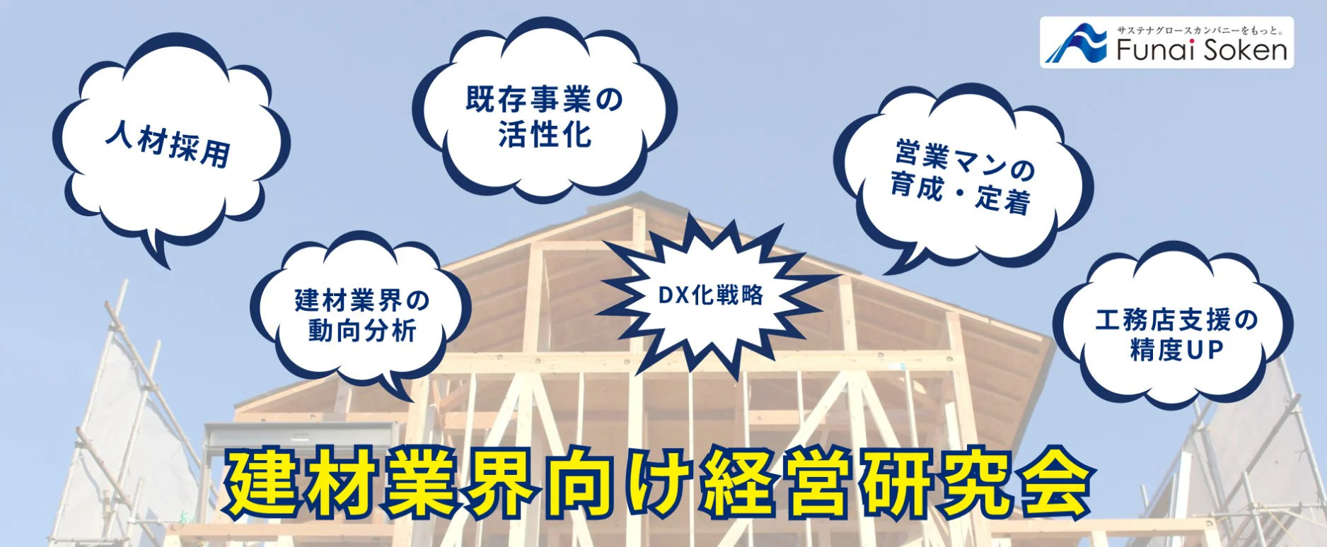 住宅会社・工務店の業績アップに特化した超実践型の勉強会です。商品開発やWEB集客、新人教育、多角化戦略などの最新成功事例を共有します。経営者同士の事例発表やモデル企業視察を通じ、時流に合わせた経営課題の解決と成長を支援します。